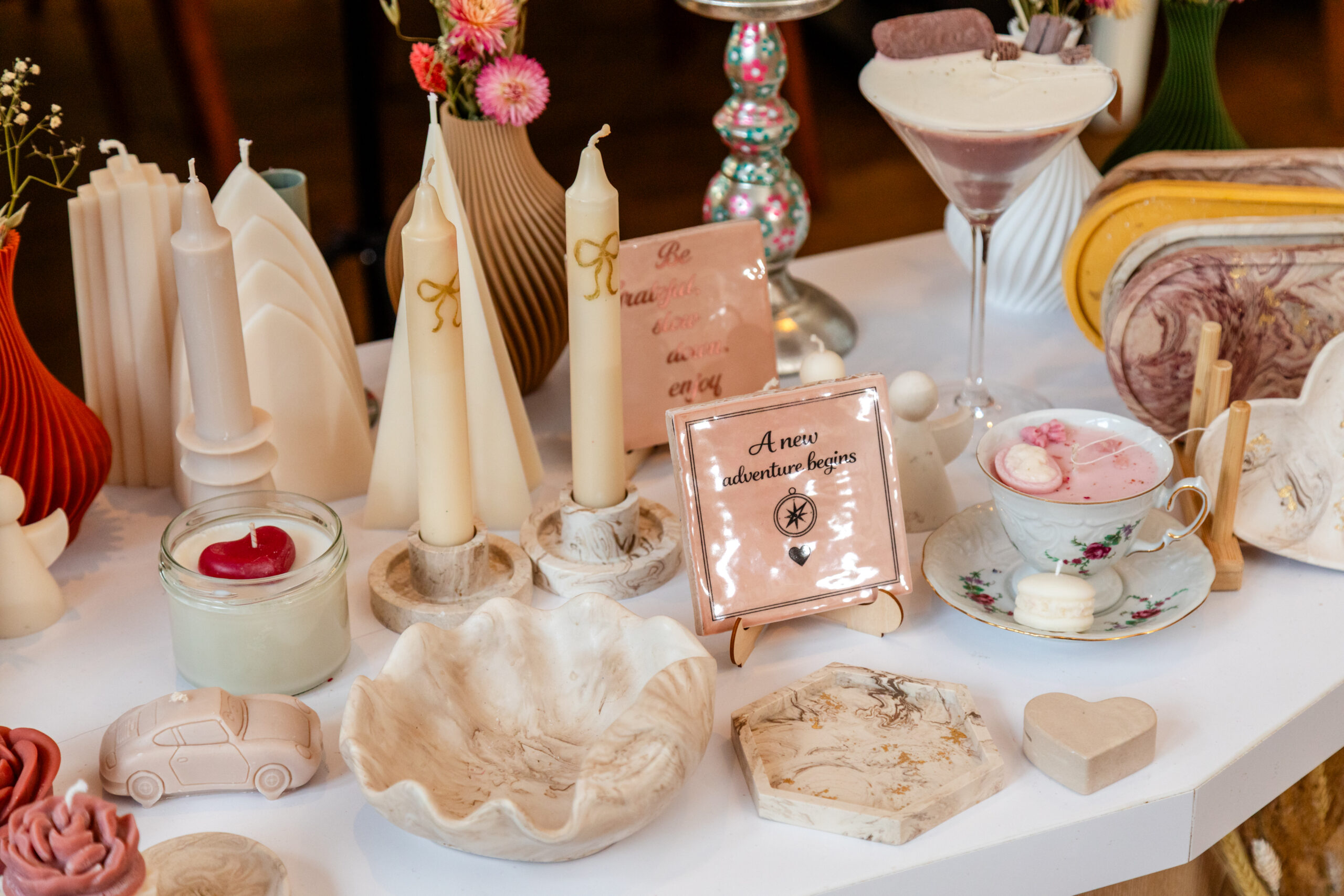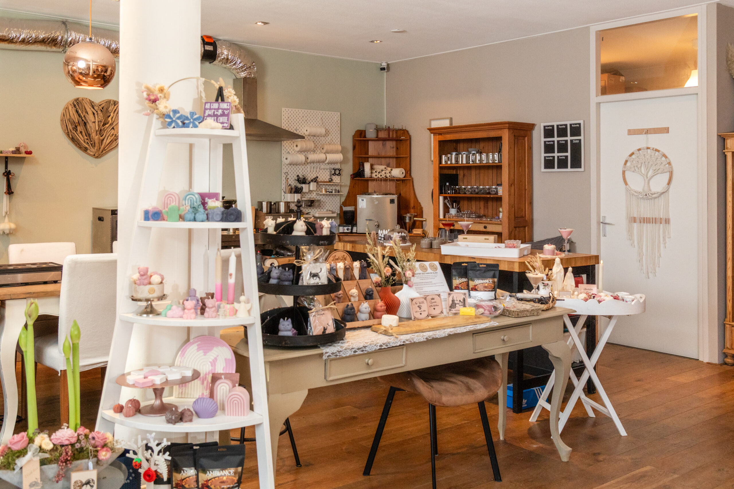 Ik werk zoveel mogelijk met duurzame en lokaal ingekochte materialen en producten, die vriendelijk zijn voor mens en milieu. Denk aan koolzaadwas, droogbloemen, jesmonite en milde, huidvriendelijke ingrediënten voor mijn handgemaakte zeep. Ook maak ik graag gebruik van vintage theekopjes als basis voor unieke geurkaarsen.
